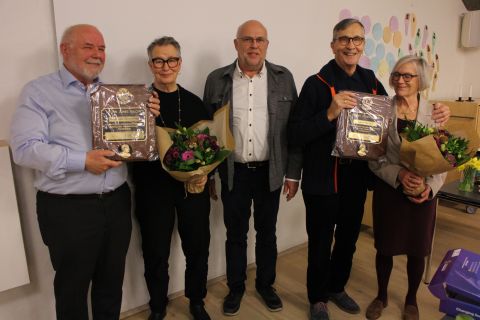 Hans Ove Petersen t.v. og Ivan Tyrsted t.h. Ledsagerne fik en flot buket blomster.