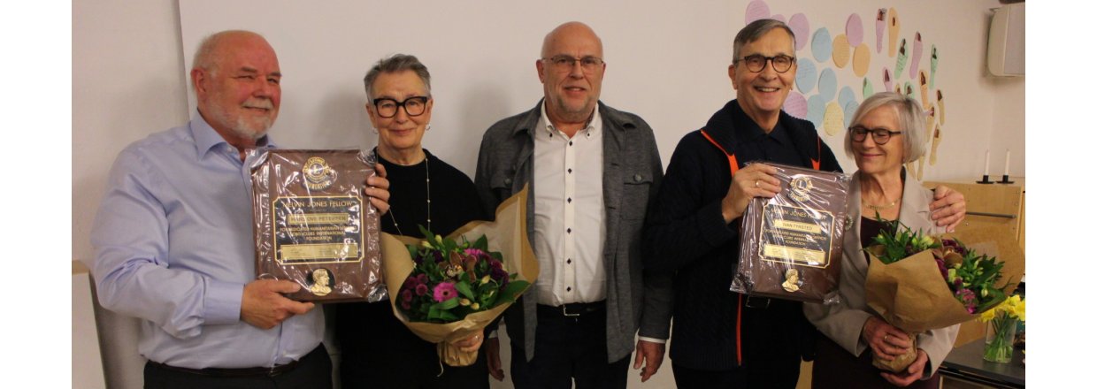 På klubbens nytårkur faldt der to Melvin Jones Awards af til to af klubbens ildsjæle: Hans Ove Petersen og Ivan Tyrsted. Klubbens præsident stod for overrækkelsen. Hans Ove får hæderen for sit store arbejde med regnskaberne. Ivan får sin for sit store engagement og ideskaber.